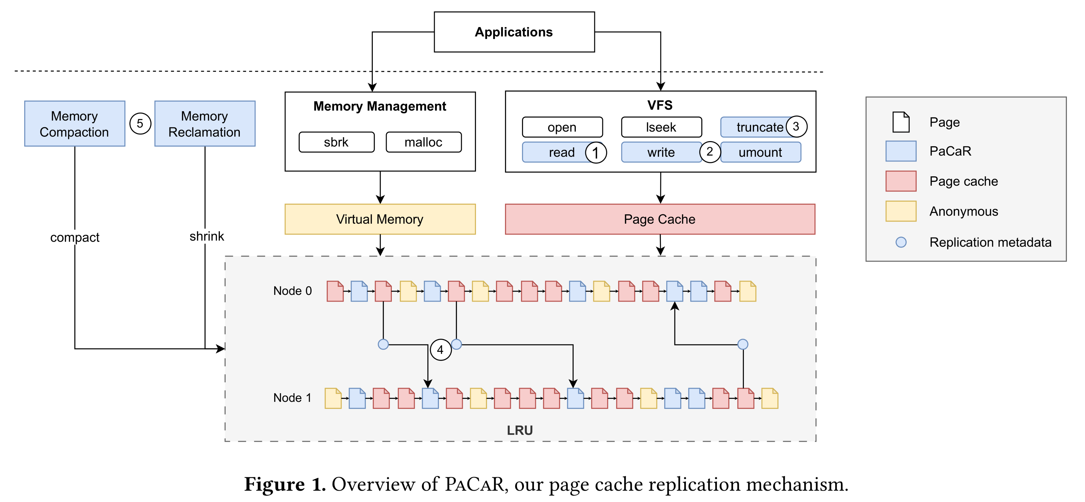 each NUMA node gets a copy of the page cache (referred to as twins)
